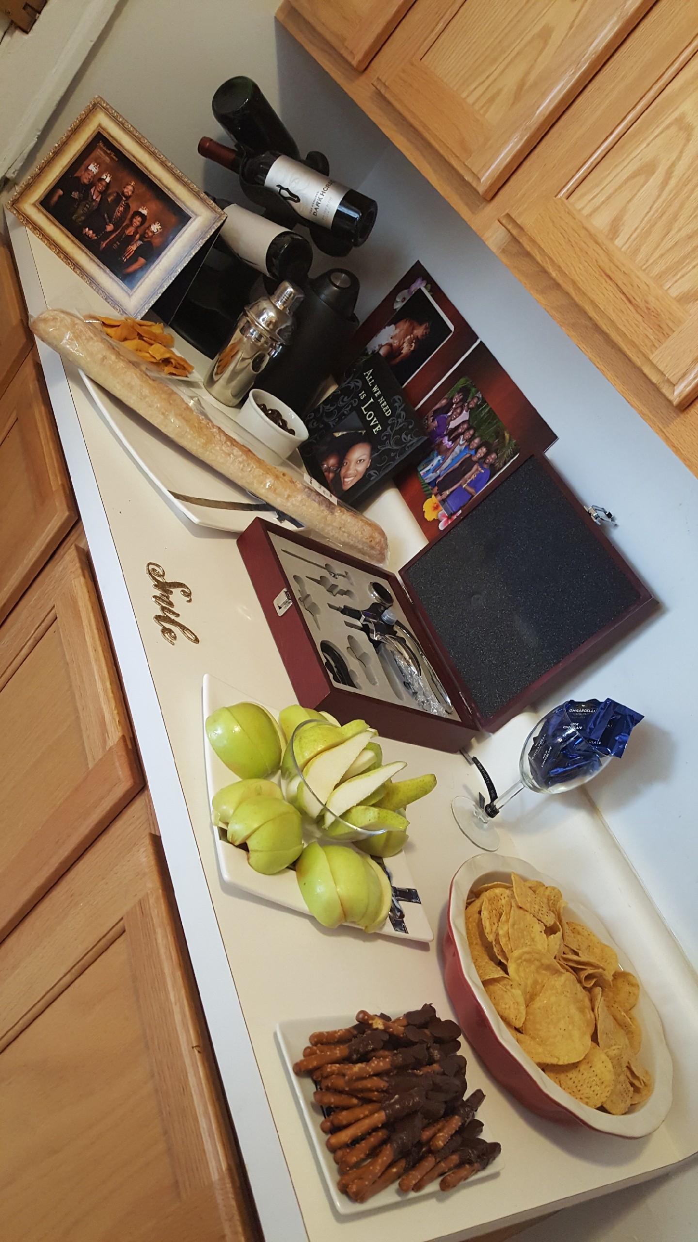 Of course, you can’t have drinks without eats. We kept it light and did snacks instead of a full meal menu. We had so much chocolate. I made chocolate covered strawberries and chocolate covered pretzels. There was Columbian dark chocolate and some even more delicious dark chocolate with caramel and sea salt from Trader Joe’s. Plenty of Ghirardelli milk choclate squares and a bunch of dark chocolate covered cherries. Red wine and chocolate mix great and it was delightful.