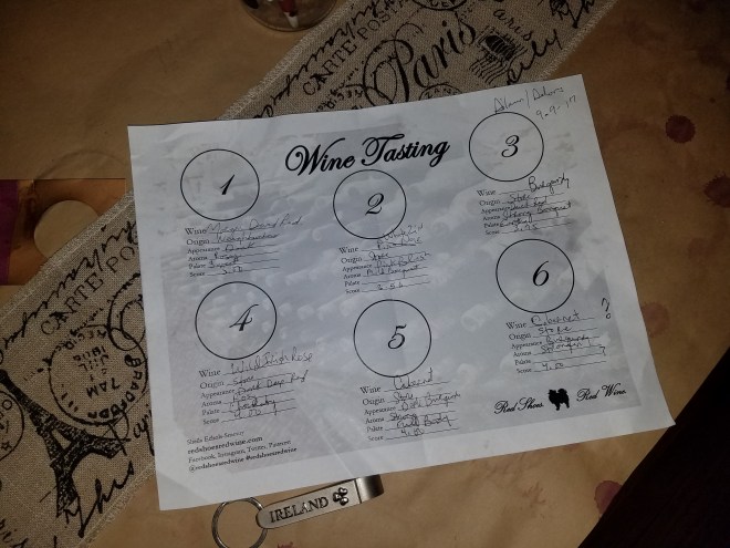 My brother-in-law is awesome and brought these great wine tasting note sheets. People could take notes on which wines they did and didn’t like.